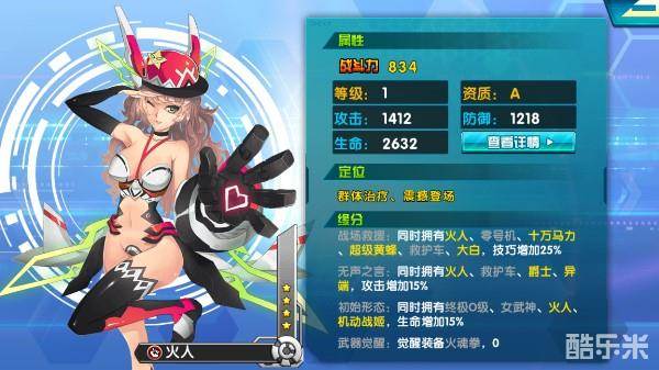 心跳战姬玩了有一段时间了,大家都对能奶的战姬战姬有了一定的认知,那么我来给大家介绍一下今天这位特邀战姬:火人