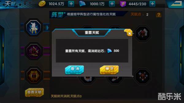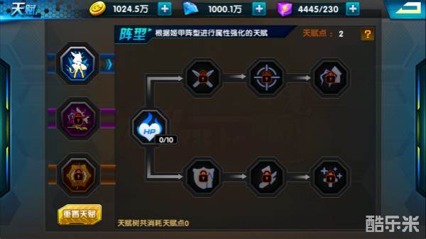 每个天赋都有对姬娘属性的增益。属性天赋的增益开启是跟战队等级和属性等级有关的,这个,这里不多做介绍,我们主要讲一下天赋的重置。