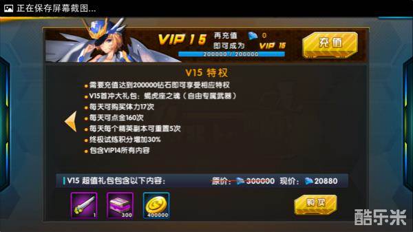V15可以每天购买体力17次,对于打副本的小伙伴来说,简直就是福利,不然的话需要等体力恢复,别人早就超过你了。