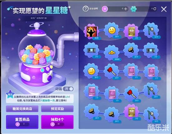可使用少量星星糖币进行商品重置,直到出现心仪的商品为止。
