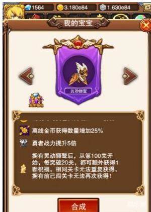 小提示:宝宝灵动狮鹫可以让你每突破20关都可以额外获得1颗祝福,想尽办法去获得它吧。