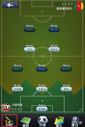 ※ 点击【分析】即可查看球员对抗关系及基本属性,可更合理安排阵形。