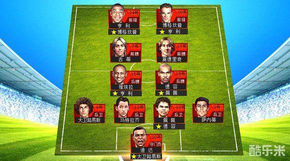 对方后卫很强,我们可以选择具备假摔或暴力突破的前锋,通过骗取点球和传球来获得最佳进攻