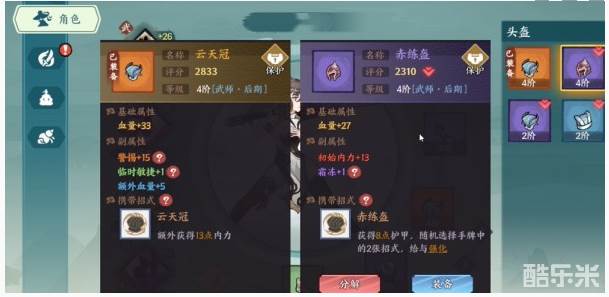 2、推荐选择赤练盔、碧涛袍、侠客履,抵挡敌人攻击。
