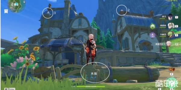 3、灰蓝伞雀4和5:在木箱位置,往地图的东南方向看;射击或直接攻击在石井上的灰蓝伞雀4;射击在屋檐上的灰蓝伞雀5。