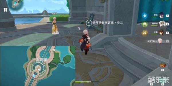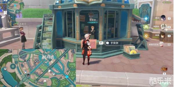 1、玩家传送枫丹廷西南方向锚点,往地图的东南方向走;前往书报摊,与于贝尔对话,选择“看看书”;直接可以购买3本书的部分卷,分别是雷穆利亚衰亡史·卷一/卷三;枫丹动物寓言集·卷一;怪盗与名侦探:虹彩胸针之谜·卷二/卷三。