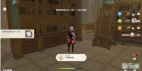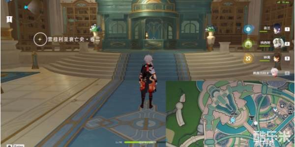 传送枫丹廷神像,前往沫芒宫,往地图的东方向走;前往图中指引书架,收集雷穆利亚衰亡史·卷二,与书架交互获得成就「不幸的总集」。