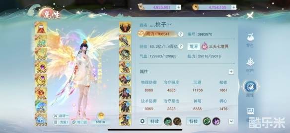 Q2:少侠的号目前最大的优势或特点是什么呢?可以分享一下人物属性面板吗?