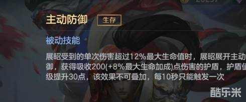 首先来简单看一下技能效果,被动为生存方向技能,每次受到的伤害如果超过12%最大生命值,就能获得主动防御效果生成护盾。通过提升等级护盾值还会增加,但不可叠加,每10秒只能触发一次。有了这一效果,想要一套技能秒掉就比较困难。大招发起冲锋,对目标位置造成伤害后将其击退,接下来会变为另一种巨猫形态作战,生命值和魔法防御以及物理防御提升,变形态持续12秒。