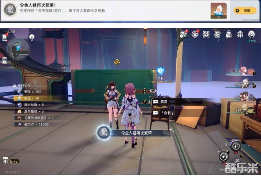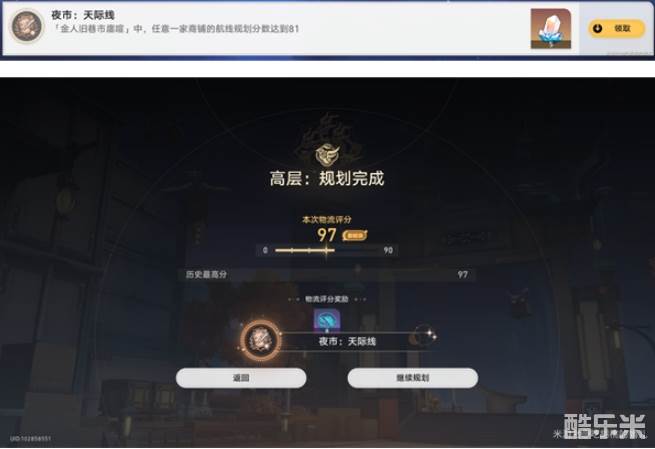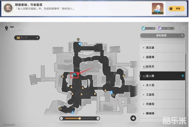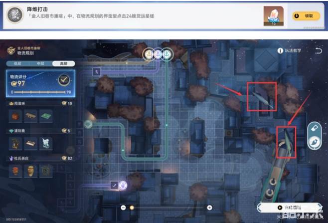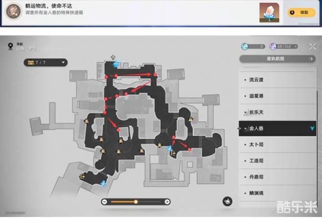 回到”会长”处,对话”处理金人巷事务”,而后选择”物流规划”,中高低层随便,然后看到图上右上角会有星槎来回飘,点星槎24下,即可获得该成就。