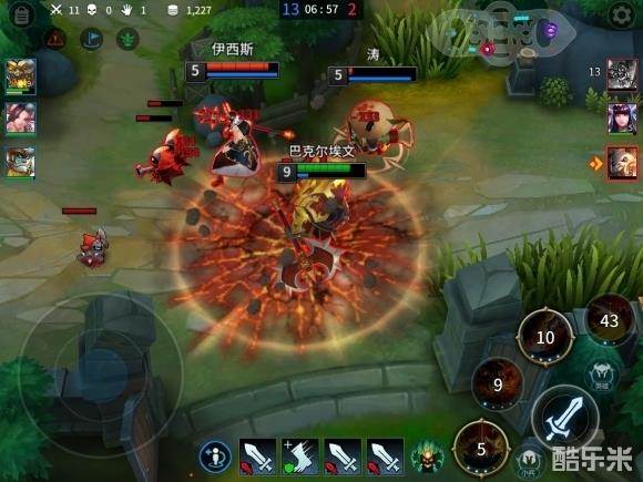 在1V1对线方面,刑天可能稍显弱势,因为技能的基础伤害以及成长性都不太如意,很有可能会有跳过去但是因为伤害不足而无法击杀对面的情况,但是还是有一些小combo可以尝试一下。在远离对手时,跳跃把敌人震飞,之后接一下平A再立刻用暴击取消平A的硬直,然后开咆哮追击敌人,视实际情况是否开大招。在1V1对拼的时候,跳跃技能变得至关重要,因为这个技能跳起在天上的时候是全身无敌的,在观察到对手到达关键等级时,可以选择不用跳跃接近对手而是咆哮减速接近对手,暴击拍晕之后追着打一套,而跳跃则留着用来躲避对方关键性技能。笔者在这里一定要加一句,如果情况允许的话,尽量拖动技能预判来放,因为对面要是保持移动的话,直接点击释放的暴击和跳跃都会放空…而缺少这两个技能的刑天对对手的威胁就非常小了。