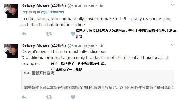 “换言之,只要LPL官方认为没问题,基本上任何原因都可以重开LPL的比赛”。可能因为LPL本赛季多次的重开事件,让歪果仁对LPL的赛制持怀疑态度。