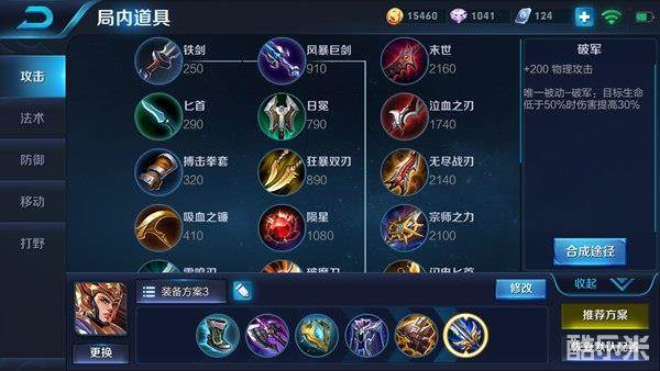 六神装:抵抗之靴、暗影战斧、极寒风暴、魔女斗篷、不祥征兆、破军