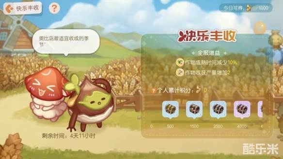 快乐节期间,索菲亚掌事再次使用了古籍中的丰收之术,所有小奥比都将获得种植相关的增益效果,趁着秋天去收获吧~
