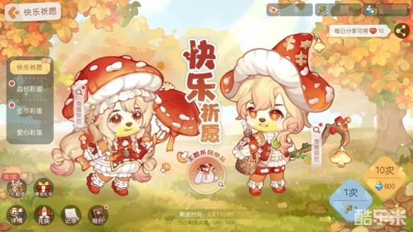 传递祝福和快乐的丰收信使来到丰收庆典啦,快乐精灵主题彩蛋“快乐祈愿”限时登场!彩蛋奖励包含晨星品质时装「蘑菇精灵套装」、「蘑菇信使套装」以及家具「蘑菇秘旅」系列等全新礼物!还有典藏品质的「部落首领套装」、「部落祭司套装」和家具「原始部落」系列、装扮散件「软萌蘑菇小斗篷」「闪亮亮蘑菇提灯」「信使祝福卷轴」「漫天枫叶」等奖励限时获取哦!