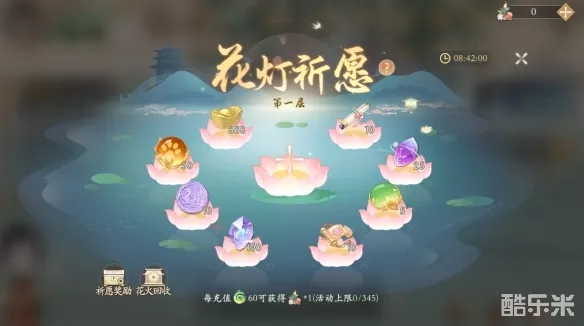 2、活动期间每充值60珠玉可获得1个祈愿花火(活动上限345个),祈愿花火可用于活动祈愿,每层都可选择一个心愿奖励,获得心愿奖励可选择提前进入下一层(不可再返回上一层),活动总层数为4层,层数越高,奖励越丰厚;