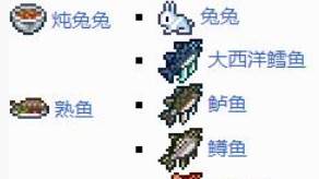 4、最后是游戏初期能够获取到的食物,比如炖兔兔、熟鱼、果汁、水果沙拉等,这些食用后只会加一点点的属性,前期食用还行,后期有更强食物代替。