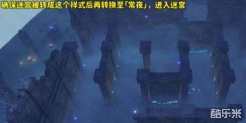 2、如果已经转动了迷宫,此时需要保持迷宫的位置如下图所示。在这个位置,切换到夜晚,进入迷宫;