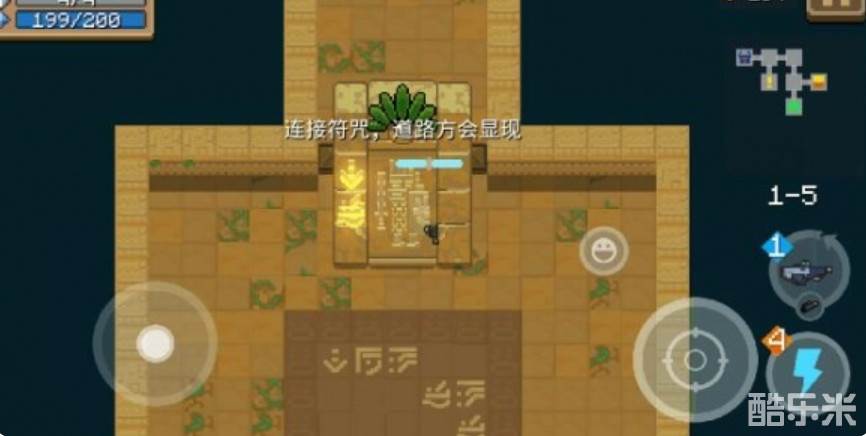 首先进入地牢,需要1-1是沙漠关卡,在1-5关卡boss房间有几率发现一个额外的通道,在小地图中是没有显示的,进入房间与石板互动后会出现符咒谜题,解密成功即可打开传送门。