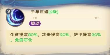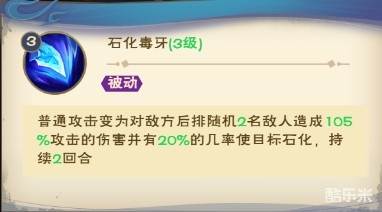 普通攻击变为对敌方后排随机2名敌人造成105%的伤害并有20%的几率使目标石化,持续2回合。