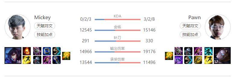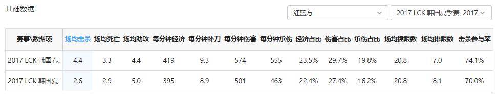 对比2017LCK春季赛的表现,Mickey在本赛季中的各项数据均有大幅下滑。