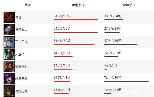 2017LCK夏季赛英雄BP榜单