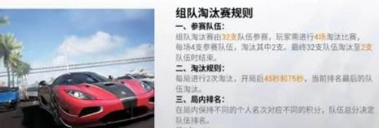 如果说上面的巅峰级数是不均衡对战的话,那么组队淘汰赛则是好友组队进行。在同等情况下的对战,玩家们在其中选择自己相关级别的车辆,与同档次其他玩家进行速度和技能上的考验。而且比赛采用的还是残酷的淘汰赛制,随着时间的进行,会逐渐逃掉末尾最后的队伍,一直到比赛的结束。