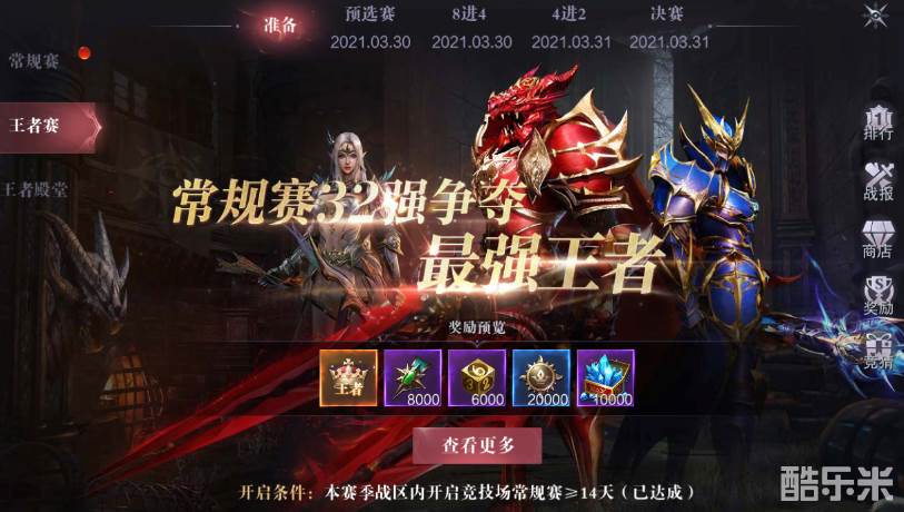 王者大奖:获得王者赛资格的玩家都可以获取奖励,最终排名越高奖励越丰厚。