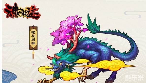 善恶交织的神兽:樱花树神 在传说中,艳丽的樱花需要吸收人血,才会更加明丽不可方物。栽种樱花树时,树下埋上尸体,正是为了让樱花树能吸食人体的血肉……而这些“陪葬品”的怨念,便凝聚出樱花树神——有着类似麒麟神兽的威猛外表、将樱花树作为装饰品托在背上、亦正亦邪的妖怪。人们只要供奉它并献上“美丽”、“强大”、“耀眼”等赞美之词,就能让樱花树神平静下来,并成为守护一方的小小“善神”。