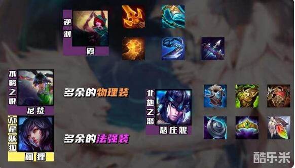 3、霞主C装备上面我们可以选择呢羊刀巨杀,最后一件去搭配一下无尽、轻语或者别的物理输出装备,主坦慎可以搭配肉装抗伤就可以了。