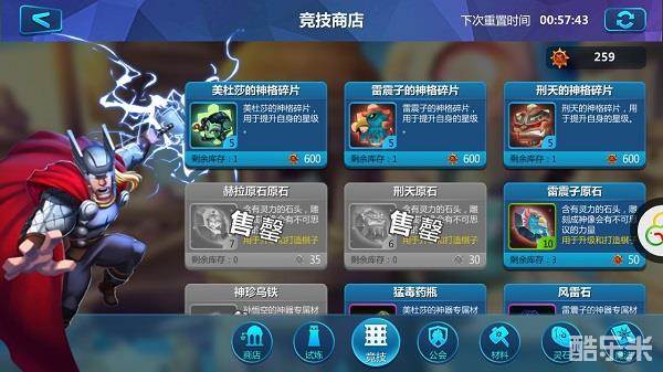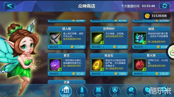 材料商店需要使用砖石进行购买(售卖神格碎片以及紫色品质装备材料宝箱)使用20钻石可重置一次,每天都有固定的免费重置时间。