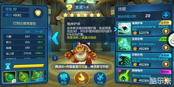 随着神灵等级提升,神灵的技能也需要升级(技能等级不能超过神灵等级),随着神灵技能提升,技能的效果有所加强。