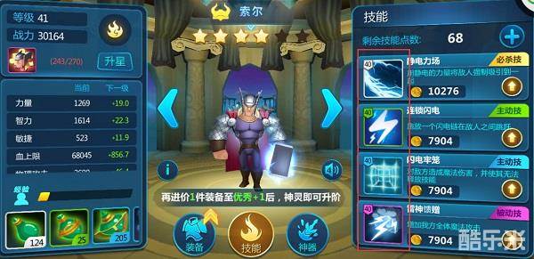 雷神索尔技能特点:静电力场:使用静电将敌人强制吸引到一起并造成大量伤害。 连锁闪电:施展一个闪电链在敌人之间跳跃,最多链接3个敌人造成伤害。