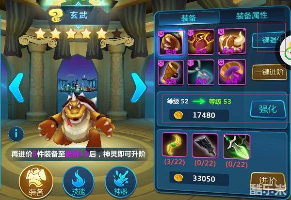 装备强化可以提高神灵的基本属性(装备强化等级不能超过神灵等级),强化需要消耗一定的金币,金币可以在副本或者钻石购买获得。