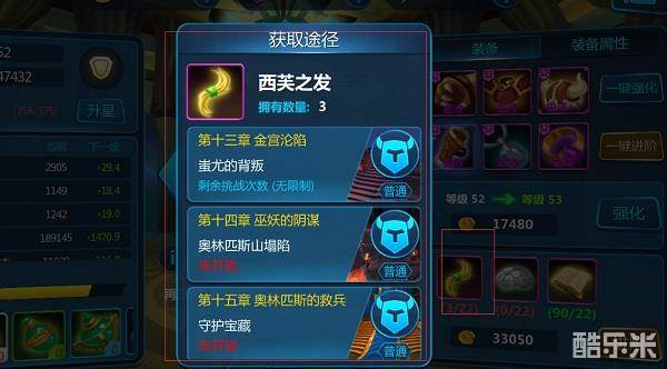 进阶装备品质需要消耗对应的材料以及金币,可在相关副本获得或者商店购买。