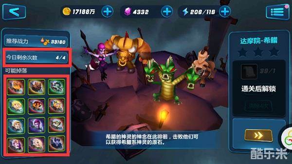 每日通过次数是有限制的(每个阵容有4次机会),通关不消耗体力,原石奖励产出是根据战斗的神灵有一些关联。