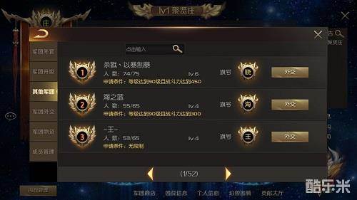 创建军团要求:角色满50级,同时身上携带50万金币。