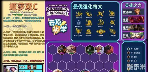 1.金铲铲之战姬莎双C推荐英雄之力:EZ、奥恩、阿福、卡牌