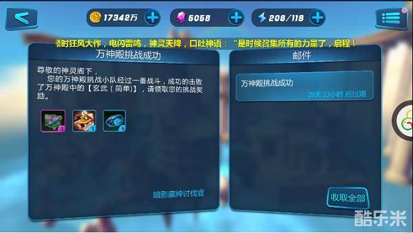 难度分三种为会简单丶普通丶困难,难度越高获取的奖励就越多(随机获取神器材料和神灵碎片)。战斗胜利后会根据输出伤害的排名发送奖励(通过邮件)。