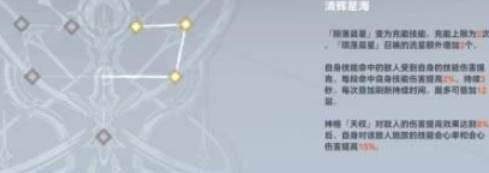 1.陨落晨星:在锁定目标上方召唤五个流星,对范围内的敌人进行攻击,造成共计2128%攻击力的光属性伤害。