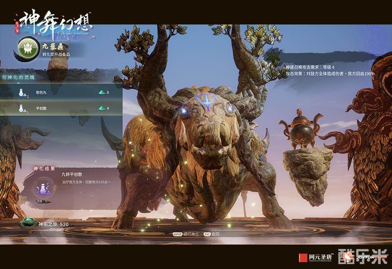 在《神舞幻想》中,玩家可以通过与神灵妖兽缔结盟誓,获得这些强大神祇的帮助。这种帮助不仅体现在战斗中「神援」的超高额外伤害上,在战斗之余,玩家也可以在神灵妖兽的帮助下提升物品的品质,甚至可以根据自己的需求,将装备向着不同类型炼化,获得各种不同的打击效果。