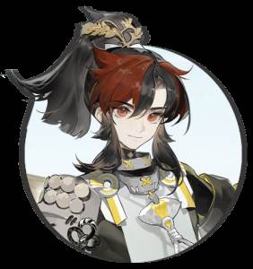 暗金发饰高扎马尾,显眼红发与眼眸同色,亮黄高光点缀素色衣装,正褪去稚气的少年英气十足。
