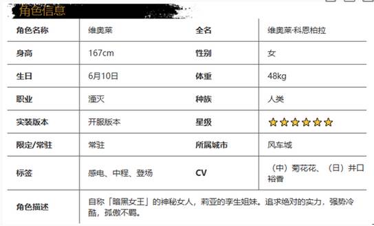 光隙解语维奥莱可以作为前锋放置在首位,登场具有高额的伤害能力,自身在参与回合中也不容易阵亡,很多玩家不知道光隙解语维奥莱强度怎么样,下面让我们一起来了解下光隙解语维奥莱。