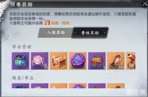 预赛奖励丰厚可观!只要入围潜龙预赛,帮会参赛成员便可获得黄金藏宝图、历练丹、璎珞球、神符宝匣和聚魂石等超多奖励。成功晋级的帮会将在此基础上发放更多丰厚奖励,帮主及管理们更收获高级皇家礼炮!此外,四个入围帮主都将额外获得“风雨·同舟”烟花!