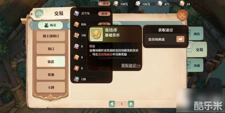 5、其他特有的基础货币,这部分都是专属货币,只能在专区使用。比如竞技场货币只能在竞技场内进行兑换,还有骑士团荣誉等都是只能在专属中进行兑换道具。