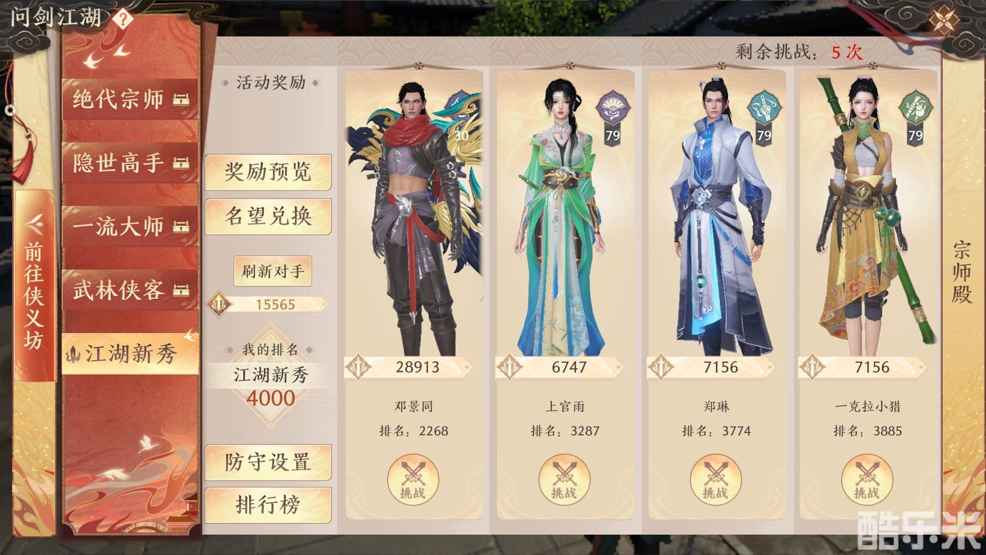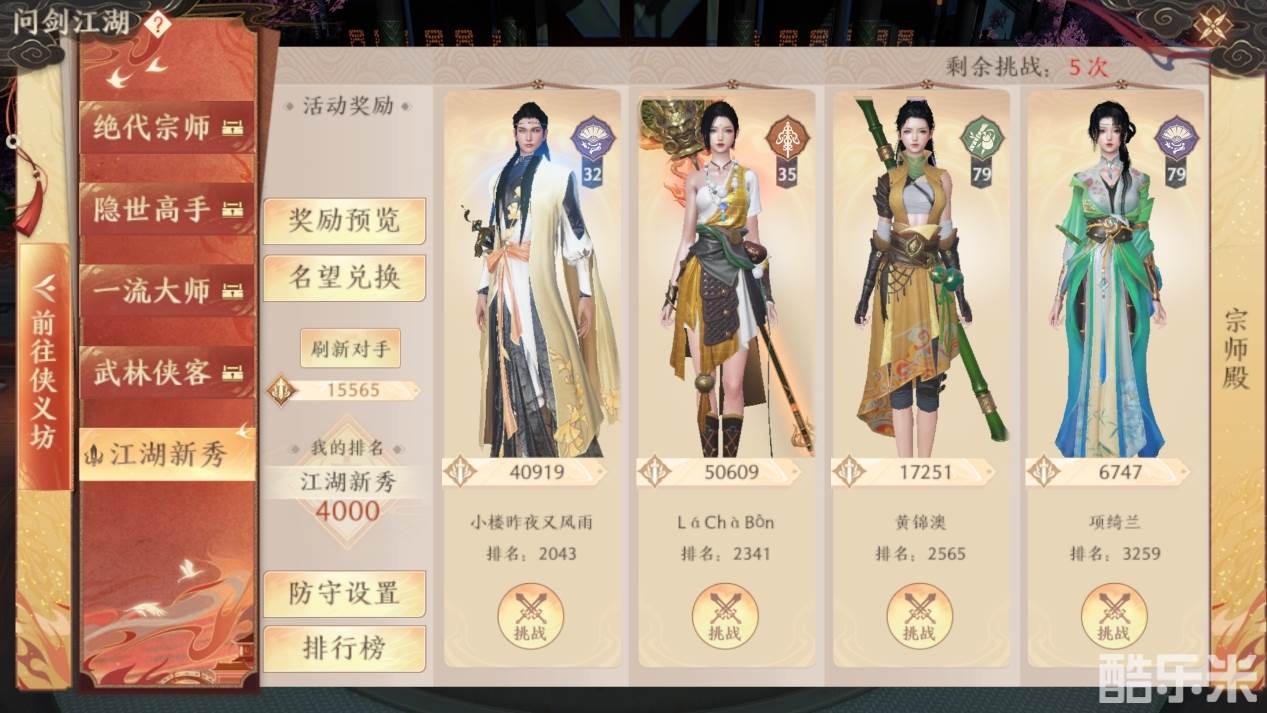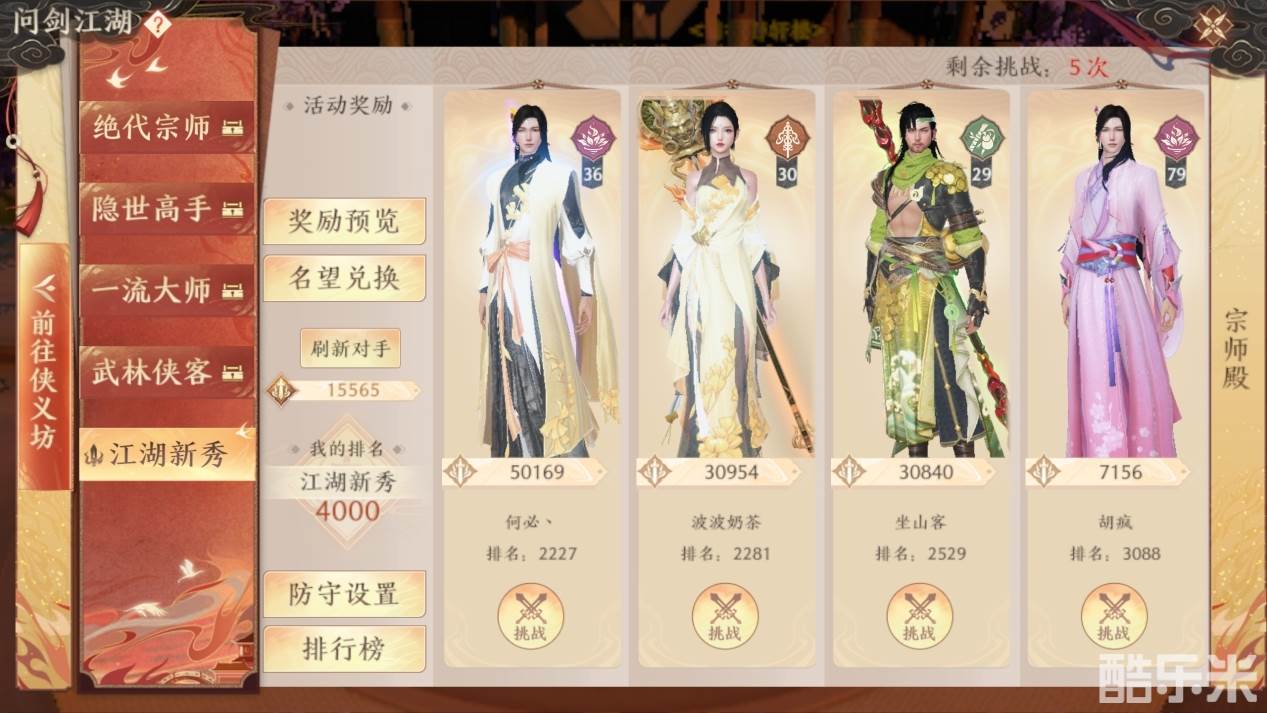少侠可在「江湖宗师殿」中,挑战同处一个江湖榜的其他侠士(无需侠士在线)。