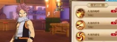 纳兹是一位力量型物理攻击手,火技能属性完美还原了动漫,人称“火龙”,是使用火之灭龙魔法的魔导士。在手游中,纳兹是游戏初期就赠送的主角,初始三技能分别是: