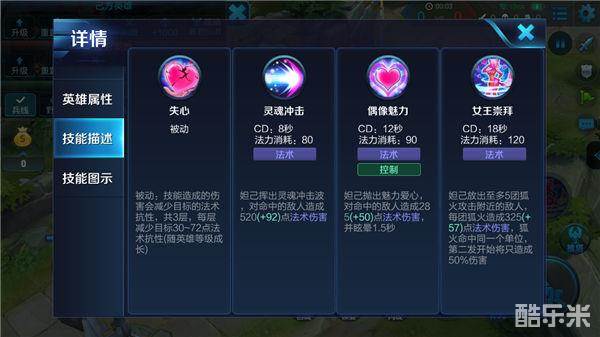 被动技能——失心:妲己的高爆发伤害不仅仅来源于装备,更在于其被动技能,减少敌人的魔抗机制,即便是敌方前排英雄也承受不住。