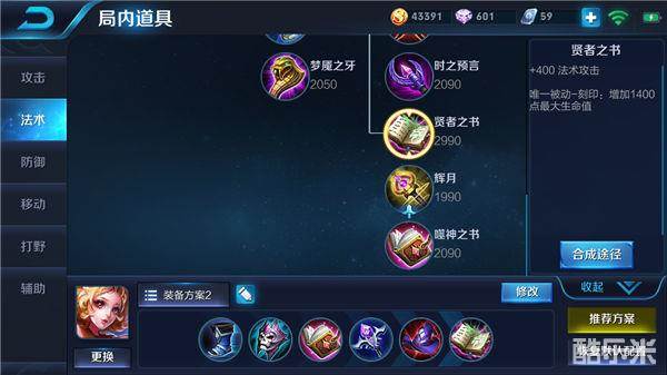 六神装:秘法之靴+痛苦面具+噬神之书+虚无法杖+博学者之怒+贤者之书