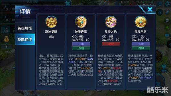 大招-敬畏圣盾:雅典娜举起圣盾,在短时间内产生一个可抵免伤害的护盾,护盾持续期间免疫控制,短暂时间后圣盾破裂,对周围敌人造成法术伤害与减速效果。